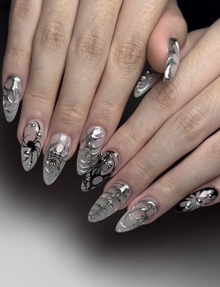 Termasuk pembersihan kuku, perawatan kutikula, serta pewarnaan kuku dengan desain full motif di semua kuku, menggunakan pilihan tema unik sesuai gaya dan tren terkini.